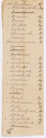 12. ^ "Senate tally sheet on nomination of John Rutledge as chief justice of the U.S. Supreme Court, December 15, 1795". Washington, D.C.: Records of the U.S. Senate, National Archives and Records Administration. Archived from the original on February 28, 2022. Retrieved March 5, 2022 – via U.S. Capitol Visitor Center.