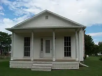 The John W. Jones House currently stands at 1250 Davis Street, Elmira, New York, across from a historic entrance to Woodlawn Cemetery.[2] It is the former home of John W. Jones and current home of the John W. Jones Museum. It stands on part of its original property, though it originally faced College Avenue.[3] Historically, the house was the private residence of John W. Jones and his family, but changed ownership several times since, and was used as rental property that fell into disrepair. Condemned by the City of Elmira in 1997, Lucy Brown brought it to the public's attention and with a group of concerned citizens, saved it from demolition.[2] It is now the home to the John W. Jones Museum.