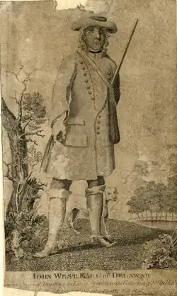 In 1737 De La Warr was appointed Governor of New York and New Jersey. However, he never travelled to America.[6] He continued his military career while being active in the House of Lords and fought at the Battle of Dettingen in 1743 during the War of the Austrian Succession.[1] On 30 August 1737, he was commissioned colonel of the 1st Troop of Horse Guards,[7] an appointment he held until his death. He became a Brigadier-General in 1743, a Major-General in 1745, a Lieutenant-General in 1747 and a General of the Horse in 1765.[1][8] In 1752 he was appointed Governor of Guernsey, a post he held until his death.[8] In 1761 George III created him Viscount Cantalupe and Earl De La Warr.[9]