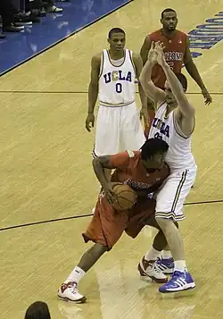 Kevin Love of UCLA defends Hill, then with Arizona.
