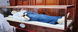 The remains of José Luis Sánchez del Río are enshrined above a side altar in the Church of Saint James the Apostle in Sahuayo, his hometown.[5]