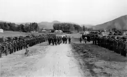 In December 1918, Stalin was sent to Perm to lead an inquiry into how Alexander Kolchak's White forces had been able to decimate Red troops there.[148] He returned to Moscow between January and March 1919,[149] before being assigned to the Western Front at Petrograd.[150] When the Red Third Regiment defected, he ordered the public execution of captured defectors.[149] In September he returned to the Southern Front.[149] During the war, Stalin proved his worth to the Central Committee by displaying decisiveness and determination.[141] However, he also disregarded orders and repeatedly threatened to resign when affronted.[151] In November 1919, the government awarded him the Order of the Red Banner for his service.[152]