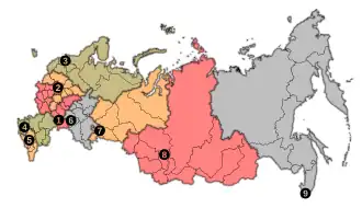 On 1 October 2019 five courts of appeal of general jurisdiction[a] and nine courts of cassation of general jurisdiction[b] were created in the Russian Federation, which are operating within the respective judicial district.[1]