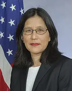 Julie Furuta-Toy (born 1960)[1] is a former U.S. Ambassador to Equatorial Guinea. Following an initial announcement by President Barack Obama on June 18, 2015, Ambassador Furuta-Toy was confirmed by the United States Senate on October 22, 2015, and subsequently sworn in on November 24, 2015. She arrived in Malabo to take up her duties on January 7, 2016. Prior to her arrival in Equatorial Guinea, Ms. Furuta-Toy served as both Deputy Chief of Mission and chargé d'affaires at the Embassy of the United States, Oslo, (2012-2015). Her lengthy tenure as chargé d'affaires stemmed from delays related to the nomination and confirmation of a new ambassador to Norway by the United States Senate.[2]