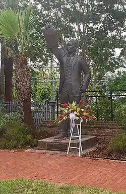 In 1979, Democratic State Representative Al Edwards of Houston successfully sponsored legislation to make Juneteenth a paid Texas state holiday. The same year, he hosted the inaugural Al Edwards prayer breakfast and commemorative celebration on the grounds of the 1859 home, Ashton Villa. As one of the few existing buildings from the Civil War era and popular in local myth and legend as the location of Major General Granger's order, Edwards's annual celebration includes a local historian dressed as the Union general[64] reading General Order No. 3 from the second-story balcony of the home. The Emancipation Proclamation is also read and speeches are made.[65][66] Representative Al Edwards died of natural causes April 29, 2020, at the age of 83,[67] but the annual prayer breakfast and commemorative celebration continued at Ashton Villa, with the late legislator's son Jason Edwards speaking in his father's place.[68][69]