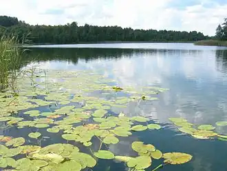Juodieji Lakajai is a lake in eastern Lithuania, in the eastern part of Molėtai District Municipality, near the border with Švenčionys District, about 12 km (7.5 mi) east of Molėtai, located in the Labanoras Regional Park. The lake extends 7.15 km (4.44 mi) from northwest to southeast, with a maximum width of 1.2 km (0.75 mi). Altitude is 145 m (476 ft). The shoreline is very winding, with a total length of 20 km (12 mi) (22.6 km (14.0 mi) including islands). The shores are dry, high and forested. There are eight islands in the lake: England Island (5.02 ha (12.4 acres)) and seven small unnamed ones. In the northern and north-eastern parts, are the peninsulas (Ščiuro Cape and Cibaragis). The beach is narrow, covered with sand. The bottom has deep pits and is covered with mud. The lake is surrounded by the forests of Lakajai, Inturkė, Juodenėnai and Rašia.