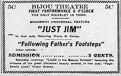 1. ^ "Progressive Silent Film List: Just Jim". silentera.com. Retrieved August 25, 2009.