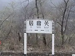 Juyongguan railway station (simplified Chinese: 居庸关站; traditional Chinese: 居庸關站; pinyin: Jūyōngguān Zhàn) is a railway station in Beijing, near the Juyongguan section of Great Wall. The station was built in 1910 to increase the transportation capacity of the Nankou-Kangzhuang railway section.[1]
