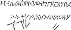 The Käymäjärvi inscriptions are two inscription-like mark rows on a stone approximately 52.5 cm high and 105 cm wide, engraved with characters similar to those in runic alphabets.[1] The Käymäjärvi inscriptions are near Lake Käymäjärvi, about 26 km northwest of Pajala in northern Sweden. The inscriptions were first reported in 1689 and were thought to be man made. According to a 2018 report by archaeologists, geologists and historians; however, the inscriptions were found not to be man made but instead results of natural processes.