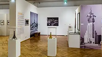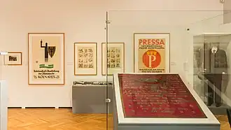 After the Millennium Exhibition in 1925, which presented numerous objects from the historical museum, these were largely transferred to the new Rhenish Museum in Deutz, with which it was eventually merged.[42] Modern exhibition techniques such as "instructive models, casts [and] statistics" were added to the inventory.[9] Due to the concept of the new museum being extended to the Rhineland, objects of rural and middle-class domestic culture from the Lower Rhine region to the Westerwald were added. From 1925 onwards, a collection of Judaica was built up, which now (2013) comprises around 350 objects.[43]
