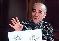 Sugiura's consciousness of Asia began as a child with his attraction to Asian folk music and grew during a his time teaching at Ulm, where he acquired a new found self-awareness about Asian identity.[27] However, Sugiura's preoccupation with the question of defining Asian design and iconography was informed by his trip to India in 1971 when he was sent under UNESCO Development Program in order to survey the state of Indian printing and create seminars on printing development in the country.[28] Sugiura then began producing and compiling research on ancient Asian cosmologies, calligraphic traditions, iconography, and general culture that spanned across the multiple countries within the Asian continent. The regional breadth of his research interests speak to one of the core tenets of his theories — many of the multilayered symbols and iconography of various Asian countries have shared origins that are independent from Western traditions.[29] Through the Asian Cultural Centre for UNESCO, Sugiura has published his research in the periodicals Asian Culture and APC. He has also created award-winning luxurious book sets that evidence his deep understanding of these cosmologies, such as The Mandalas of the Two Worlds (伝真言院両界曼荼羅) (1977) and Tibetan Mandalas - The Ngor Collection (西蔵曼荼羅集成:チベット・マンダラ) (1983). In addition to his leadership of the Asian Design Institute, Sugiura continues to promote the study of Asian design through lectures, academic publications, and exhibitions.[30]