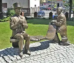 The Cabaret was founded and led by composer Jerzy Wasowski (1913-1984) and writer Jeremi Przybora (1915-2004), the two older gentlemen in the cabaret's title.[1] Wasowski wrote the music, and Przybora, the TV script.[2] The cabaret focused on two Bourgeoisie characters, Pan A and Pan B (Mr. A and Mr. B) "in dinner jackets, bowler hats, and with carnations in their button holes," who tried to find themselves in the new world of communist People's Republic of Poland, invariably poking fun at the changing reality.[3][4] Their humor has been described as "absurdist, sophisticated and elegant".[1] Music formed an important element of the cabaret's style, leading some critics to assert that the show was less of cabaret and more of a "musical theatre of absurd".[5] Many top Polish actors of that time played in the cabaret as guests. Most notable performers included Mieczysław Czechowicz, Edward Dziewoński, Wiesław Gołas, Kalina Jędrusik, Irena Kwiatkowska, Barbara Krafftówna, and Wiesław Michnikowski.[4][6][7]