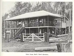 The establishment of a State Farm at Kairi by the Queensland Government was announced in May 1911.[9][10] Fifty acres of land was initially cleared for the farm, which was to focus on dairying and pigs initially.[11] Drummond MacPherson was transferred from his role as manager of the state farm at Biggenden to manage the Kairi State Farm.[12] By March 1912, the state farm was growing maize, cow pea, rhodes grass, pumpkins, sugar melons and cucumbers.[13] The State Farm closed in 1929, apart from the piggery which operated for a few years longer. From 1929, the farm was operated by commercial interests.[14]