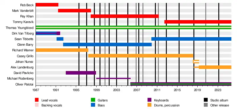 The band was formed in Florida in 1987 by guitarist Thomas Youngblood, with Richard Warner on drums, Rob Beck on vocals and Dirk Van Tilborg on bass and keyboards, as "Camelot". This name was originally suggested by Youngblood's mother, since she loved John F. Kennedy.[3]