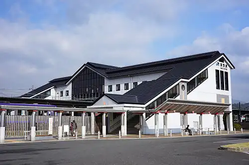 Kamo Station (加茂駅, Kamo-eki) is a railway station of West Japan Railway Company (JR-West) in Kizugawa, Kyoto, Japan. Although the station is on the Kansai Main Line as rail infrastructure, it serves as terminal by both the Kansai Line and Yamatoji Line in terms of passenger train services.