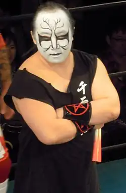 Chiharu Watanabe (渡辺 千春, Watanabe Chiharu)[1] is a Japanese professional wrestler, better known for his ring name Kanjyuro Matsuyama (松山 勘十郎, Matsuyama Kanjūrō). He has worked in Toryumon and Michinoku Pro Wrestling, but is more famous for his long career in Osaka Pro Wrestling. Along with Kikutaro and Stalker Ichikawa, he is considered one of the greatest three comedy wrestlers in Japan.[2]