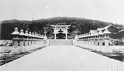 The site was originally established as Takao Kotohira Shrine during the Japanese rule of Taiwan in 1910 dedicated to Omononushi-no-Mikoto and Emperor Sutoku.[1] In 1920, government of Takao Prefecture applied to the Taiwan Governor-General’s Office central government in Taihoku Prefecture for additional worshipping of Prince Yoshihisa and renamed the shrine as Takao Shrine.In 1926, upon acquisition of land on the hillside of Shoushan, fundraising was underway for the Shrine relocation, which was completed in 1929 and received the Kensha rank in 1932, officially listed in the Japanese state Shinto system.