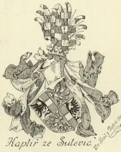 Kaplíř of Sulevice (Czech: Kaplíř ze Sulevic) was a noble family in the Kingdom of Bohemia, first documented in the 14th century.[1][2] The family was named after the village of Sulevice in northern Bohemia (today known as Sulejovice, part of the Ústí nad Labem Region) and is recorded in land registers and royal charters from the reign of Charles IV. Members of the family held minor feudal offices and served as vassals under higher-ranking nobles within the Bohemian aristocracy.[3] Jan Kaplíř of Sulevice, active in the 15th century, served under King George of Poděbrady during the Hussite Wars.[4]