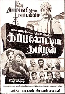 Kappalottiya Thamizhan (transl. The Tamilian who launched a ship) is a 1961 Indian Tamil-language historical drama film produced and directed by B. R. Panthulu. The film stars Sivaji Ganesan, Gemini Ganesan and Savitri. It is based on the 1944 book of the same name by M. P. Sivagnanam, a biography of V. O. Chidambaram Pillai who founded the Swadeshi Stream Navigation Company to break the monopoly of the British over maritime trade out of India.