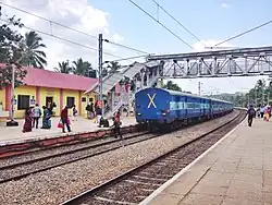 Kuzhithurai (Marthandam)[4] railway station is situated at a distance of 1.5 km from Karavilai . This railway station collection is more than seven crore per annum and a daily passenger patronage of more than 50,000 people. The station has two platforms and falls on the Kanyakumari—Trivandrum line in the Trivandrum Division of the Southern Railway zone. Most of all daily trains passing through the station halts in Kuzhithurai station.