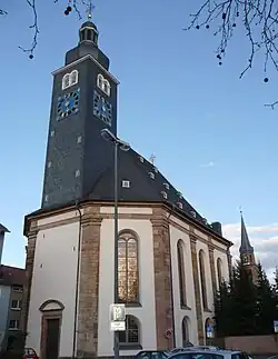 The Karlskirche is a church in Zweibrücken built in 1715, destroyed in 1945, rebuilt in 1970.[1] It is one of two landmarks of the town with Alexander's Church (Alexanderskirche, built 1493–1514).[2] It was court church from 1733 to 1858. Its congregation forms part of today's United Evangelical Church of the Palatinate.