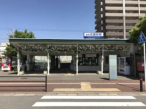 Kashii-Kaenmae Station (香椎花園前駅, Kashii-Kaenmae-eki) is a passenger railway station located in Higashi-ku, Fukuoka Fukuoka Prefecture, Japan. It is operated by the private transportation company Nishi-Nippon Railroad (NNR), and has station number NK06.[1]