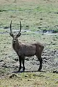 Wildlife features include large animal herds, particularly of Cape Buffaloes, zebras, giraffes, and elephants, plus along the Katuma river, crocodiles and hippopotami which upon annual dry seasons results in mudholes that can be packed with hundreds of hippos.[3] Carnivorous animals that roam this park are cheetahs, wild dogs, hyenas, leopards, and lions. Some sources claim a very high biodiversity in the park, although there are also reports of wildlife decline due to illegal hunting and poaching, presumably 'bushmeat' sustenance.[4] The area south-east of the Park near Lake Chada had the highest mammal numbers.[5]