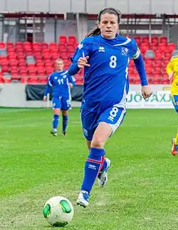 Katrín Jónsdóttir (born 31 May 1977) is an Icelandic former footballer who played as a defender. She was captain of Iceland's national team from 2007 to 2013 and competed at the 2009 and 2013 editions of the UEFA Women's Championship.