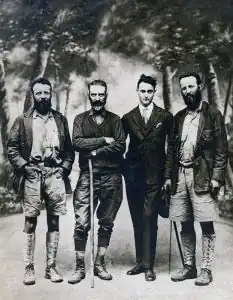 Theodore Roosevelt Jr. (left), Charles Suydam Cutting, and Kermit Roosevelt (right) with U.S. Consul Culver B. Chamberlain in Kunming, Yunnan (1929)