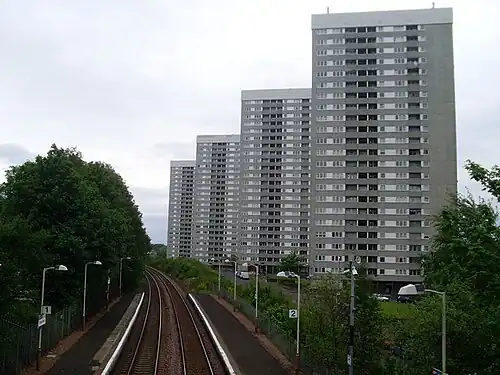 Kennishead railway station is a railway station in Kennishead, a district of Glasgow, Scotland. The station is managed by ScotRail and is on the Glasgow South Western Line, 4+14 miles (6.8 km) south of Glasgow Central.