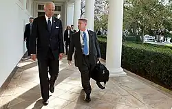 O'Connor with President Biden walking along the West Colonnade of the White House on December 6, 2021.