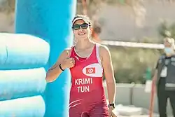 Khadija Krimi (born August 18, 1995) is a Tunisian rower. She and Nour El-Houda Ettaieb placed 20th in the women's lightweight double sculls event at the 2016 Summer Olympics.[1][2]