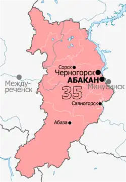 | Districts | Abakan, Abaza, Altaysky, Askizsky, Beysky, Bogradsky, Chernogorsk, Ordzhonikidzevsky, Sayanogorsk, Shirinsky, Sorsk, Tashtypsky, Ust-Abakansky |