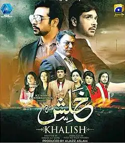 Khalish is a 2018 Pakistani drama serial directed by Syed Ali Raza Usama, produced by Aijaz Aslam, and written by Imran Ali Safir.[1] The drama stars Faisal Qureshi, Asif Raza Mir and Sunita Marshall as the main leads. The serial premiered on 14 February 2018 and ran until 19 August on Geo Entertainment.[2] It first aired every Wednesday, then Saturday, and finally Sunday at 8:00 PM.[3]