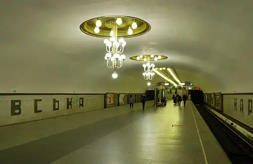 Kharkivska (Ukrainian: Харківська, pronunciation) is a station of Kyiv Metro's Syretsko-Pecherska Line. It is between the Pozniaky and Vyrlytsia stations. This station was opened on 28 December 1994.
