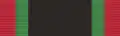 The medal hangs from a straight bar suspension, the 32 millimetre wide watered ribbon being black with thin red and green stripes on each side.