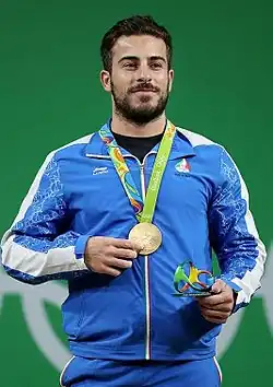 Kianoush Rostami (Persian: کیانوش رستمی, born 23 July 1991) is an Iranian-born naturalized Kosovan olympian weightlifter. He competed at the 2016 Summer Olympics, in the 85 kg event, winning the gold medal and setting a new world record with a total lift of 396 kilograms.[1]