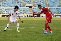 On 14 August 2017, Kim was named in South Korea's squad for the last two qualifiers for the 2018 World Cup against Iran and Uzbekistan.[74] In said tournament against Iran on 31 August 2017, Kim debuted as a starter and sent off Iranian footballer Saeid Ezatolahi while showing great defense for 84 minutes.[75] On 5 September, Kim played as a full-time player against Uzbekistan,[76] helping South Korea keep one more clean sheet. After these matches, South Korea qualified for the ninth consecutive FIFA World Cup.[77] However, he suffered an injury on 8 May 2018 and was unable to take part in that year's World Cup.
