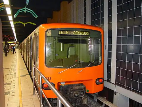 King Baudouin (French: Roi Baudouin, pronounced [ʁwa bodwɛ̃]; Dutch: Koning Boudewijn, pronounced [ˈkoːnɪŋ ˈbʌudəʋɛin]) is a Brussels Metro station serving as the northern terminus of line 6. It is located in Laeken, in the north-west of the City of Brussels, Belgium, and serves the King Baudouin Stadium (formerly known as the Heysel Stadium).
