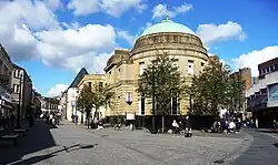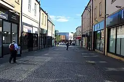 King Street is the principal business street in Kilmarnock, East Ayrshire, Scotland.[2] King Street runs from the Kilmarnock Cross over the Kilmarnock Water and on to the junction with Titchfield Street. In recent years, proposals have surfaced to demolish some of the privately owned premises on King Street in order to open the street up to views of the Kilmarnock Water.[3] Modern sculptures by Shona Kinloch currently line King Street.[4]