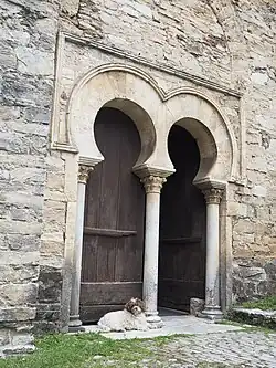 Key figures, including monarchs and ecclesiastical leaders, played a pivotal role in shaping this art, with a notable infusion of Andalusian tastes.[18] The art of León during the 9th to 11th centuries successfully merged diverse traditions, creating a distinctive style within the context of pre-Romanesque art. Noteworthy features include a mix of architectural styles, experimentation with various artistic elements like modillions or horseshoe arches, and the use of mural painting techniques influenced by both Roman and Caliphal styles.[19]