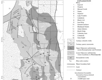 7. ^ a b c d e Hedlund, D.C. (1985). Economic geology of some selected mines in the Hillsboro and San Lorenzo quadrangles, Grant and Sierra Counties, New Mexico. Denver: US Dept. of the Interior, USGS Report 85-0456. pp. 14–23.
