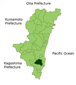 It was bordered by Nichinan City to the south and east; Kiyotake Town and Miyazaki City to the north; and Mimata Town to the west.