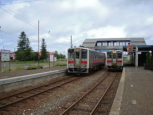 Kiyosatochō Station (Japanese: 清里町駅, Hepburn: Kiyosatochō-eki) is a railway station on the Senmō Main Line in Kiyosato, Hokkaido, Japan, operated by the Hokkaido Railway Company (JR Hokkaido). Kiyosatochō Station is served by the Senmō Main Line, and is numbered B69.