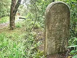 Kilometers/Miles marker on Munnar Road at Km 16, 2008 -