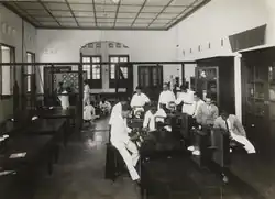 The Koningin Emmaschool was founded in 1913 as an extension of an existing nightschool program, the Burgeravondschool.[1] It was named after Emma of Waldeck and Pyrmont, Queen consort of the Netherlands at the time. Equivalent institutions elsewhere in the Indies were the Koningin Wilhelmina School (Batavia) and the Prinses Juliana School (Yogyakarta).[2] The students in the initial cohort were all Europeans or Indos.[3]