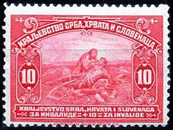 The Kosovo Maiden or Maiden of the Blackbird's Field (Serbian: Косовка девојка / Kosovka devojka) is the central figure of a poem with the same name, part of the Kosovo cycle in the Serbian epic poetry. In it, a young beauty searches the battlefield for her betrothed fiancé and helps wounded Serbian warriors with water, wine and bread after the Battle of Kosovo in 1389 between Serbia and the Ottoman Empire. She finally finds the wounded and dying warrior Pavle Orlović who tells her that her fiancé Milan Toplica and his blood-brothers Miloš Obilić and Ivan Kosančić are dead. Before the battle they had given her a cloak, golden ring and veil for the wedding as a promise of safe return, but they were slain and Pavle pointed to the direction of the bodies. The poem finishes with: