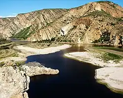 The Kouga River originates near Uniondale, Eastern Cape, South Africa, and flows eastward, where it joins the Groot River to form the Gamtoos just past the Kouga Dam. Its main tributary is the Baviaanskloof River, which joins its left bank before the dam.[2]
