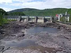 Krångede Dam is a concrete gravity dam. The dam features a spillway with 4 gates over the dam, that is located in the middle.