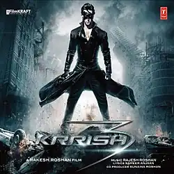Krrish 3 is the soundtrack album to the 2013 film of the same name directed by Rakesh Roshan, which served as the third instalment of the Krrish franchise and a sequel to Krrish (2006), starring Hrithik Roshan, Kangana Ranaut, Vivek Oberoi and Priyanka Chopra. The film's music is composed by Rajesh Roshan, while the background score is composed by Salim–Sulaiman. The film's soundtrack featured five original songs and two remixes, accompanying seven tracks under the lyrics of Sameer, while Annamalai and Rajshri Sudhakar, respectively wrote lyrics for the dubbed versions.